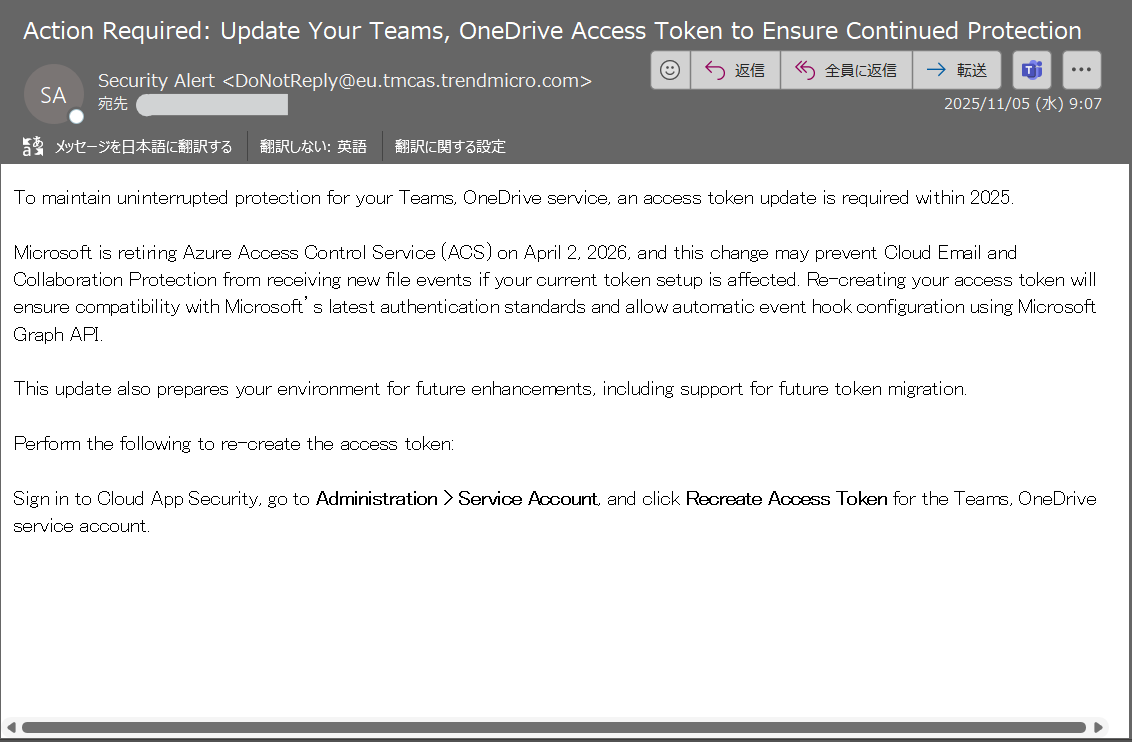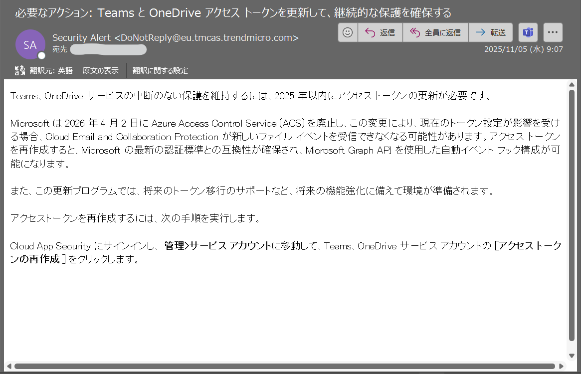 (2)の参考メール:トレンドマイクロ社からのメール(日本語)