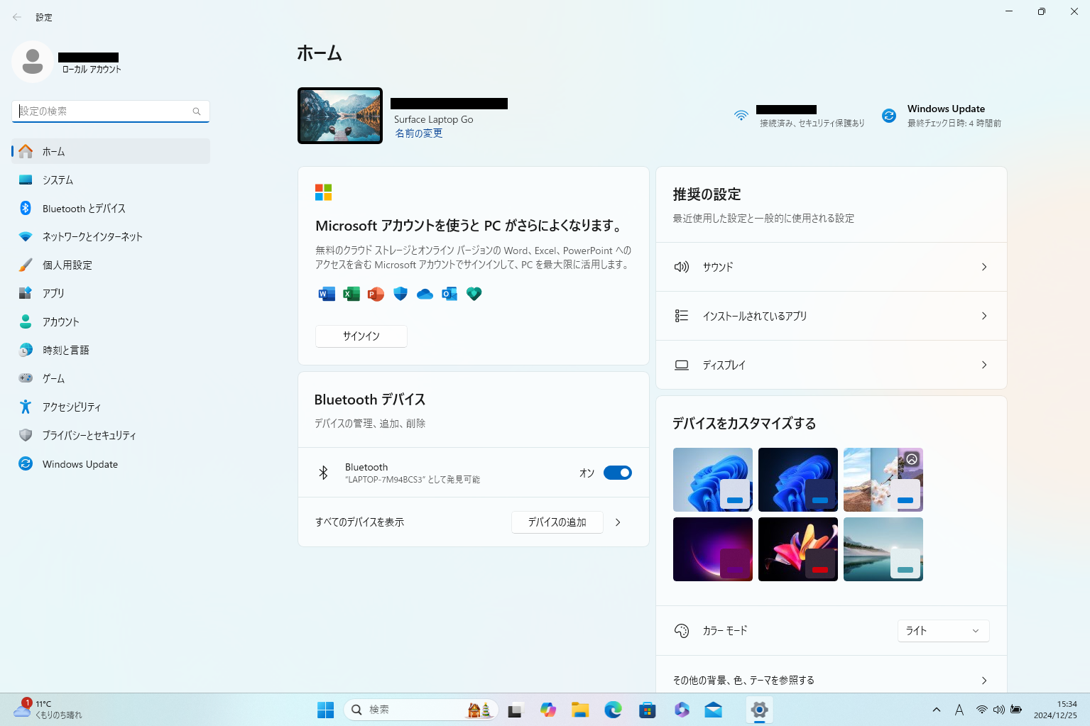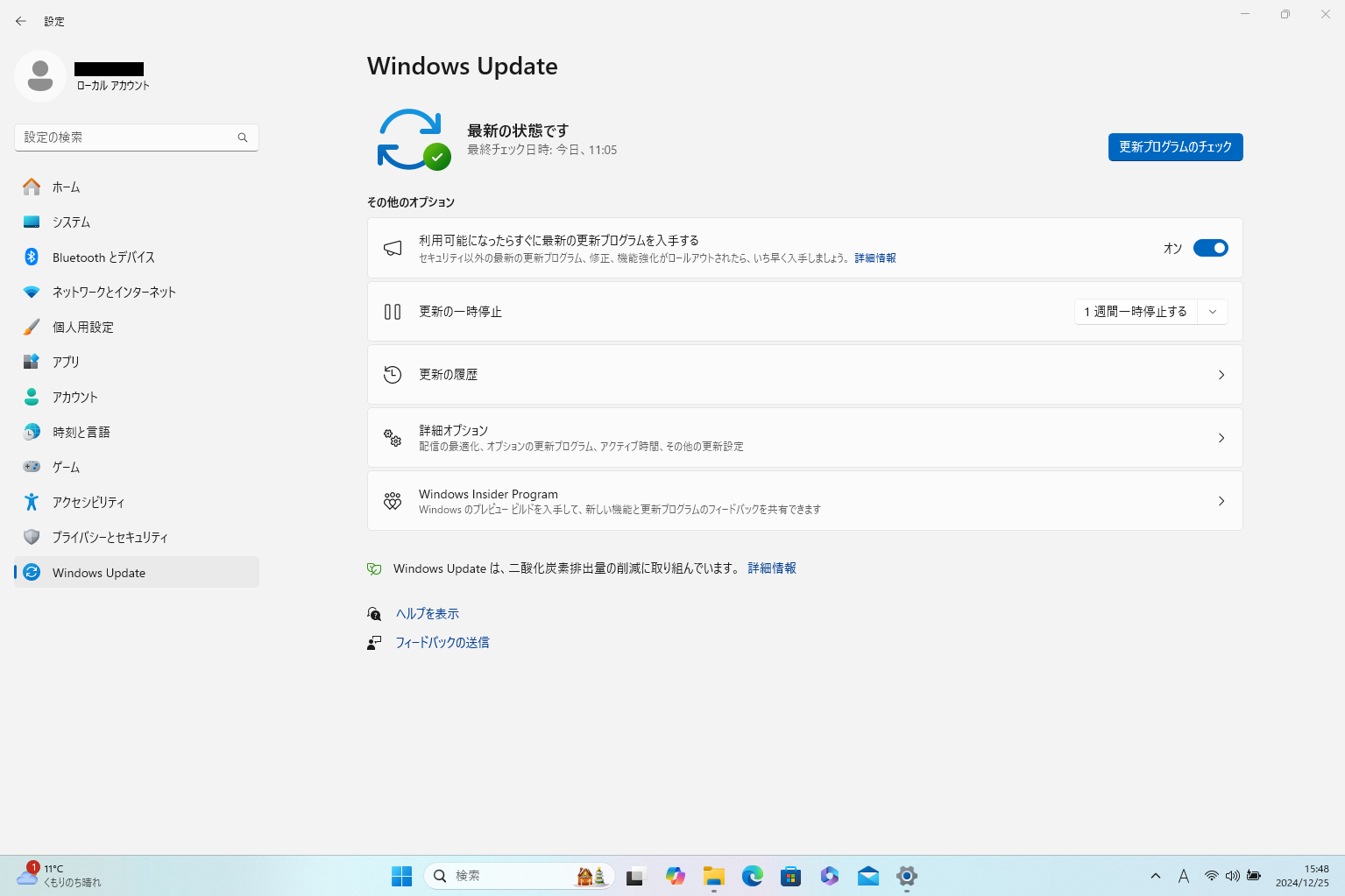 (2)「設定」一覧から「Windows Update」をクリック